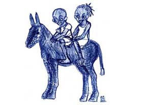 ●Donkey Years…長い時間・期間を表す言葉で、ロバに乗っていた頃からの(いったいいつ?)、というニュアンスで古い関係を意味します。Yu Are Mi Friend In Donkey Years!そういえばキングストンではあまりロバを見かけなくなったなあ。