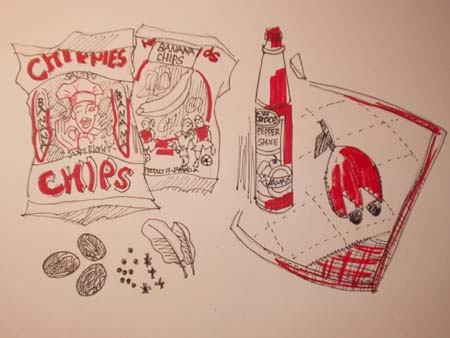 今回は、おみやげになるジャマイカの良品をご紹介。これぞジャマイカの良品、しかも安くて、日本に持って帰りやすい、を条件に選んだつもり。 ★ラム酒…有名なマイヤーズ・ラムがジャマイカ産と書いてあるので、てっきりジャマイカ人はマイヤーズを飲むのか、と思うと全然違って、ダークラムに見向きもせず、ジャマイカ人はこのホワイトラム一辺倒。ローカルのラム会社、レイ&ネフューのホワイト・ラム、通称「ホワイト」。この小瓶、200ml入りが安くてかわいくていい。ジャマイカ国旗のカラーです。スーパーマーケットや酒屋さんで。ジャマイカでラム酒好きは、年齢層が高い。若い人はもっぱらビールやワイン、スミノフのアイス。「サングスター」というメーカーのラム・クリーム、ブルーマウンテン・コーヒー・リキュールも絶品。アップルトンのラム酒もお忘れなく。 ★ブルーマウンテン・コーヒー…これぞジャマイカみやげの定番。 ★煙草…煙草好きのタバコ、クレブンA。現地でタバコは高く、皆一本ずつ買っているくらい。黒猫のイラストから、通称「キャット」。コメットの箱マッチもかわいい。今や喫煙にマッチを使う人は見かけないけれど、コメットは、ロッカーズの時代から(たぶんその前から)ジャマイカ伝統デザイン。「リズラ(紙巻タバコの紙)」は、違法ではありません。 ★スパイス類…ナツメグ、ピメントー、ベイリーフ(月桂樹の葉っぱ)、シナモン、ブラックペパーなど。ナツメグとシナモンは、お菓子やココアに最適。これらスパイスは、セットになって売ってたりもする。 ★お菓子…マカデミアナッツのような、おみやげに便利なお菓子はないなぁ。良質なカカオの産地なのに残念だ。ココナツ系、ラム酒入りのお菓子など、スーパーマーケットなどで探してみて。バナナチップスはパッケージもかわいく、ジャマイカらしい。イラストの、チッピーのバナナチップスは昔からある良品。「レゲエキッズ」なんて名前のバナナチップスを見つけた。バナナチップスといってもグリーンバナナ(甘くないバナナ)を使っているので、塩味です。プランテン・チップスもあるよ。 ★ペパーソース…ジャマイカ食品メーカー、Graceのペパーソースと、ジャークソース。ジャマイカでジャークチキンにハマった方、ぜひおみやげに。アキーやカラルーの缶詰もでています。 ★ヘンプグッズ…ヘンプソープがかわいくて使い心地もよく、イケる。オレンジやスターアップルなどのフルーツ系、ブルーマウンテン・コーヒーなどを使ったジャマイカ産ナチュラル系のソープもおみやげにおすすめ。ジャマイカ産アロマセラピーなんて小粋なものもあって良品。Star Fishというブランドより。ヘンプのアクセサリーもよく出ている。ただし、銀製品は輸入品が多い。エチオピアンクロスなども、残念ながら輸入品。棒状のインセンスは、ボブ・マーリー・グッズのインセンスをおすすめ。パッケージもカッコよくて、色んな香りがあります。キャンドルも。 ★キッチン用品…お母さんや、料理好きの女ともだちへのおみやげはこれ。ふきんや鍋つかみ、鍋敷きなど、カリビアンなデザインのかわいいグッズが豊富。 ★ボボ・グッズ…ハーフウェイツリーなど繁華街の街角で、もちろんボボ山でも買える。バッジ類のほか、毛糸編みのアキーを形どったキーホルダーが大人気。ボボがキングストンのストリートで売っていますが、おみやげ屋でも同じものが買えます。 その他レコードにカセットテープはMustでGo! 持って帰るのは大変だけど、リピーターなど手作りドラムも絶品。年末来ジャマ予定の方は、航空券のご予約をお早目に。Go deh! Reiko NAGASE SMITH (協力/アイランドツアー:http://www.nabra.co.jp/island/) 「Ricoのジャマイカ、Art Life」 Ricoのスケッチ・ダイアリは現在、下記URLへ避難中。 http://diary4.cgiboy.com/0/smithrico |